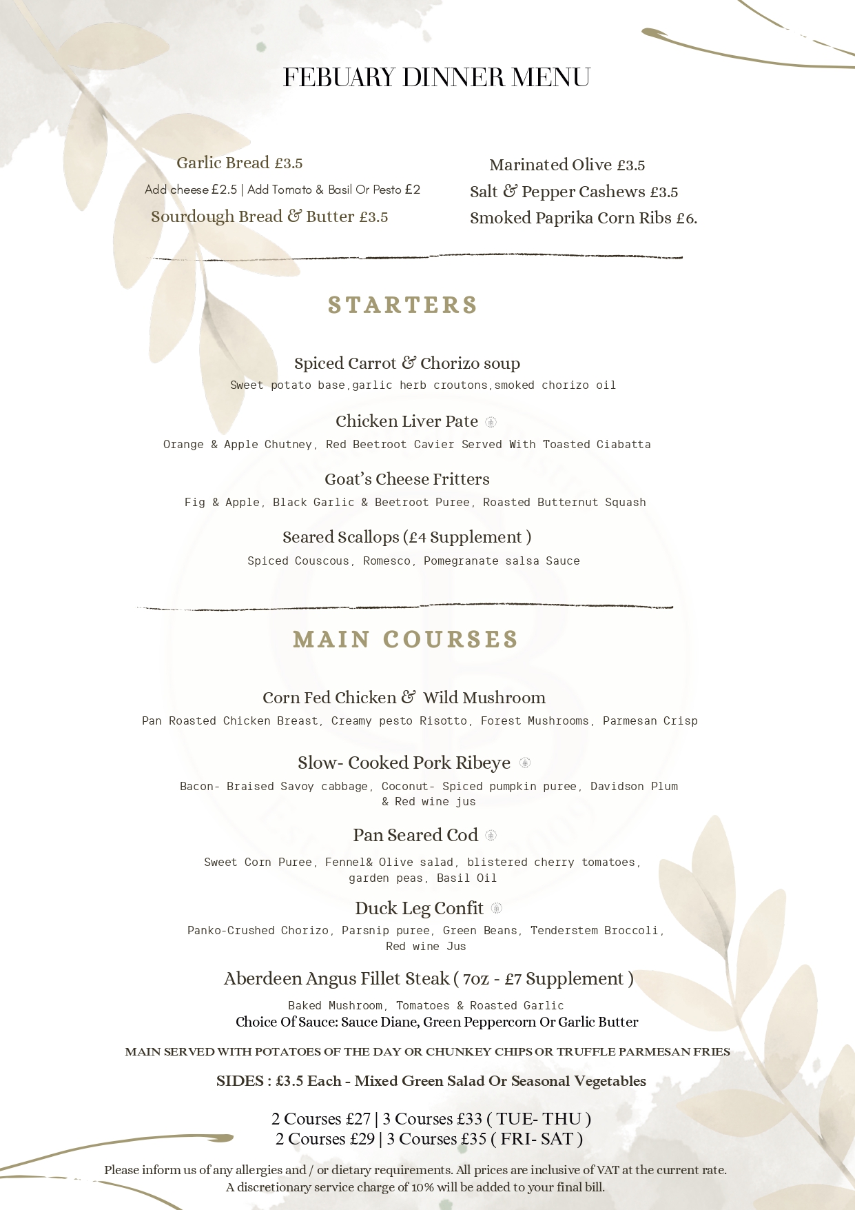 February Dinner Menu