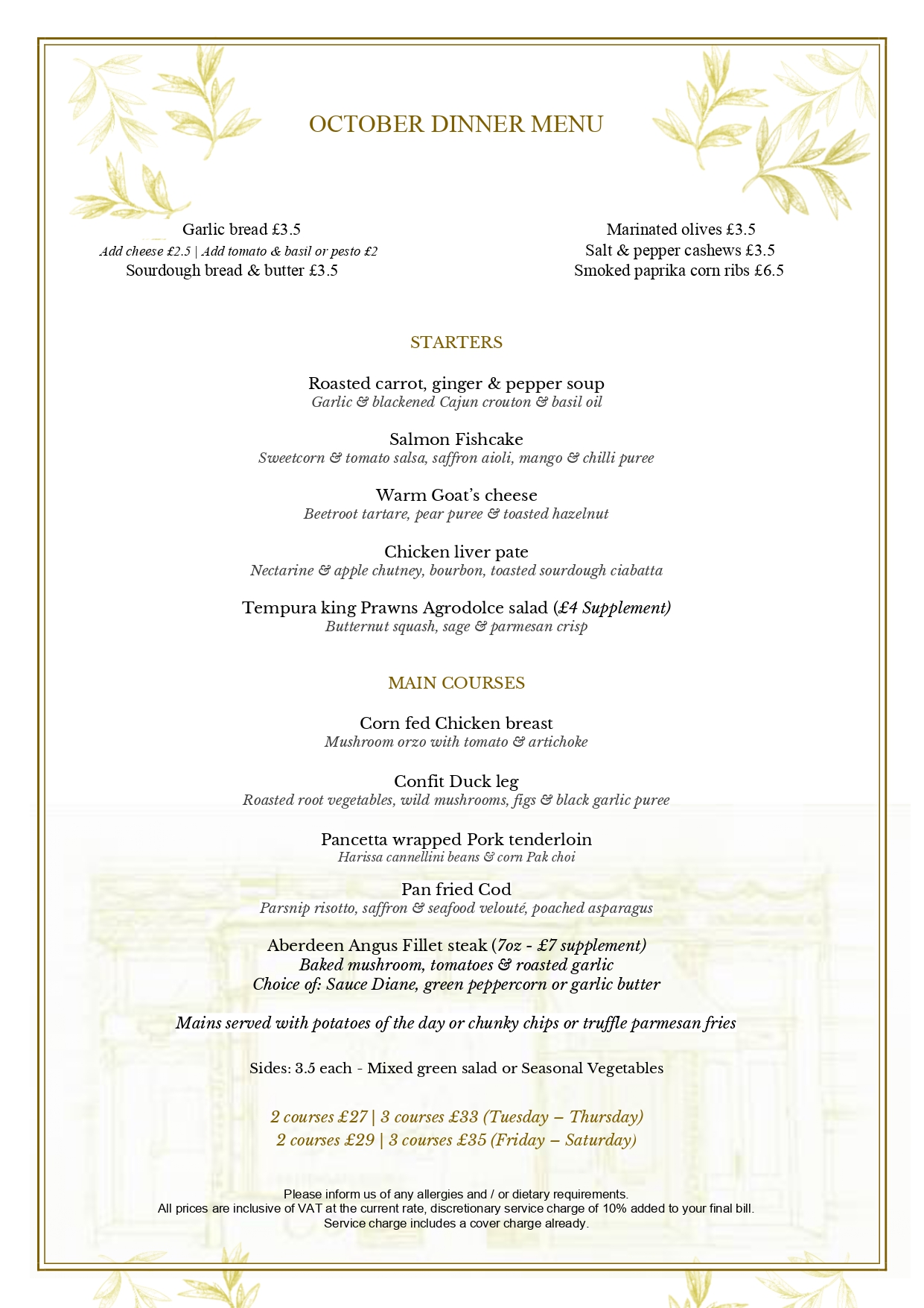 October Dinner Menu