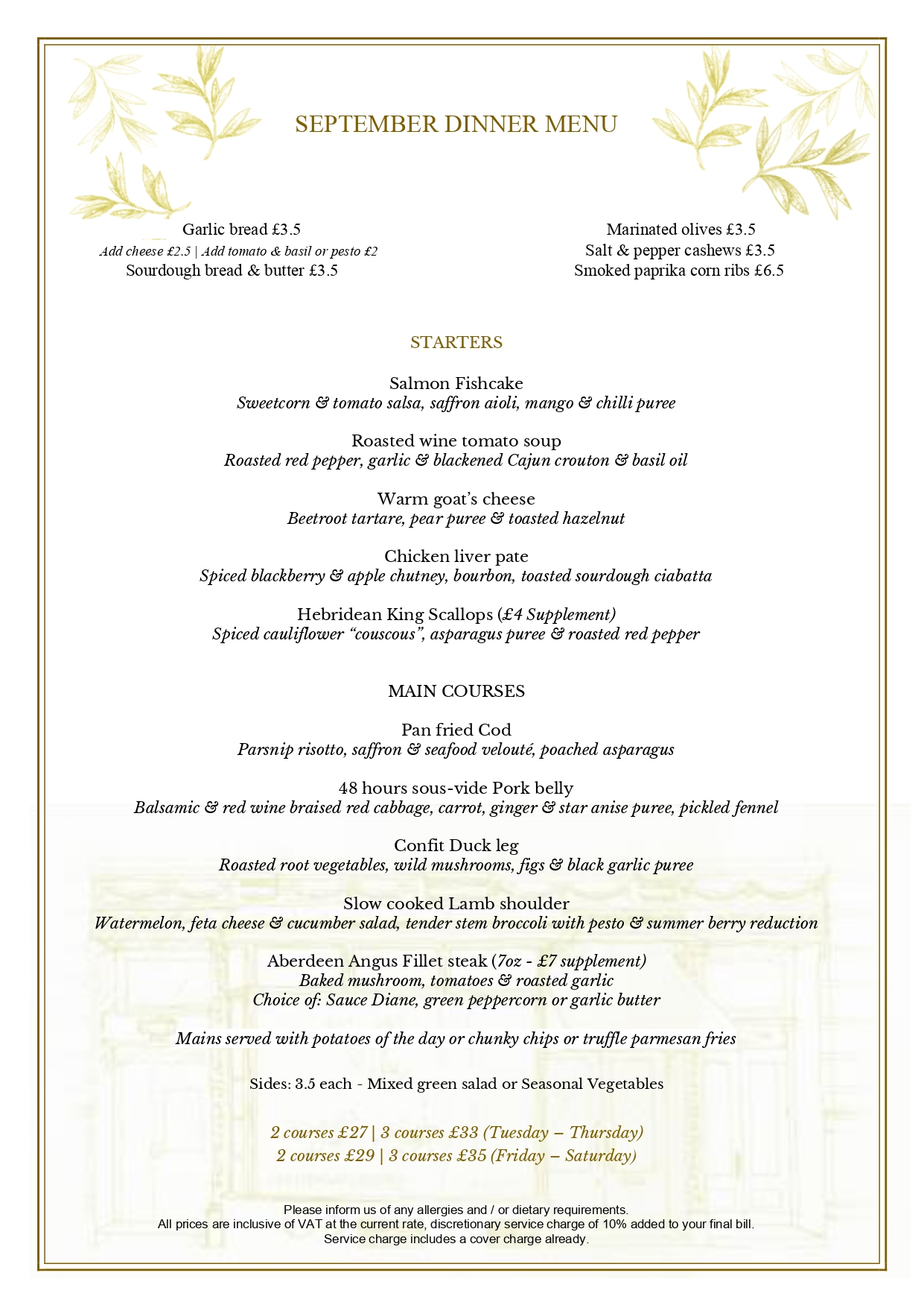 September Dinner Menu